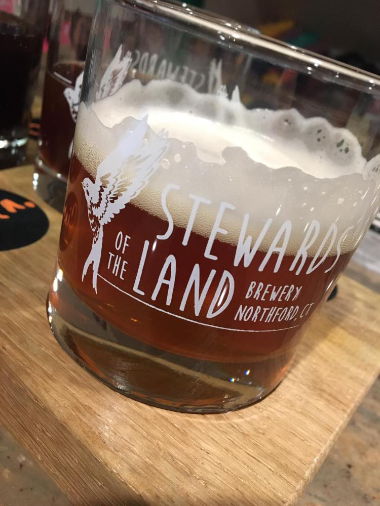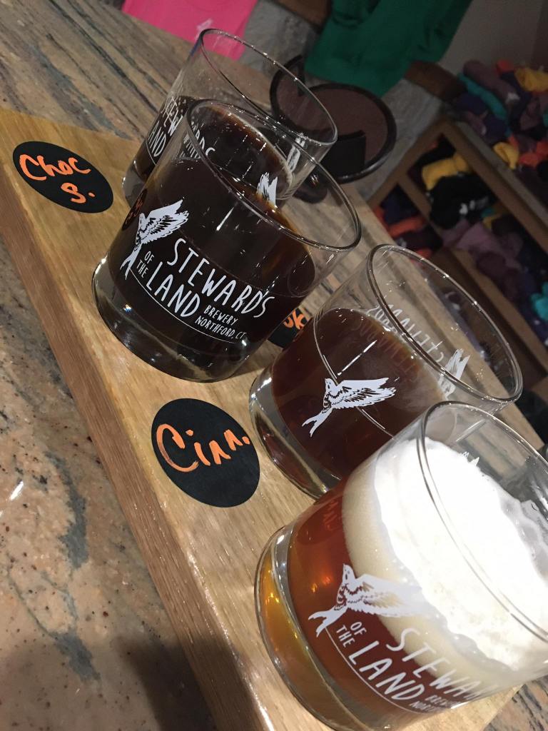 Chris: Stewards of the Land prides itself on being as Connecticut as possible. They grow a good amount of their ingredients from their farm and try to get everything else from the state; they claim “each batch is 95% to 100% CT ingredients by volume.” Their farm is just down the street from the taproom, and during the growing season they do a farmers market full of miniature goats and chickens for the kids! (I would assume the goats and chickens are to feed and/or pet, not eat). The taproom really does give that cozy house feeling, with the bar covered in marble and family room style seating. I tried their Chocolate Swallow Stout and Cinn-a-bird Brown Ale, and as you can tell with the beer names and logo, they are going for a bird theme.