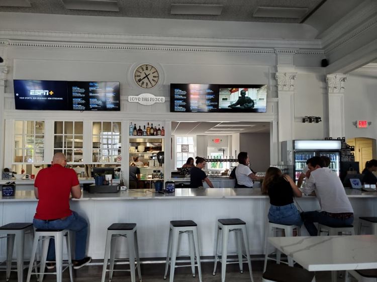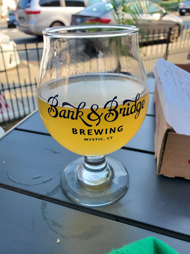 Bank and Bridge Brewing is the newest brewery in downtown Mystic. Their grand opening was last week, but they’ve been opened since June. The brewery’s building stands out as it was built in 1831 as a bank, and the inside keeps that classic fancy bank feeling. They kept the old vault in the building and display it for visitors. There is plenty of seating both indoors and outdoors, with the former teller area being the natural location for the bar. Outside food is not allowed as we found out, but they do offer food made in-house. Being in downtown Mystic is both a hit and a miss. Downtown is a great place to visit with tons of restaurants, and now two breweries, ice cream shops, and all the great summer spots, but parking can be tricky. Street parking is limited, and the Mystic Museum of Art parking lot is expensive.