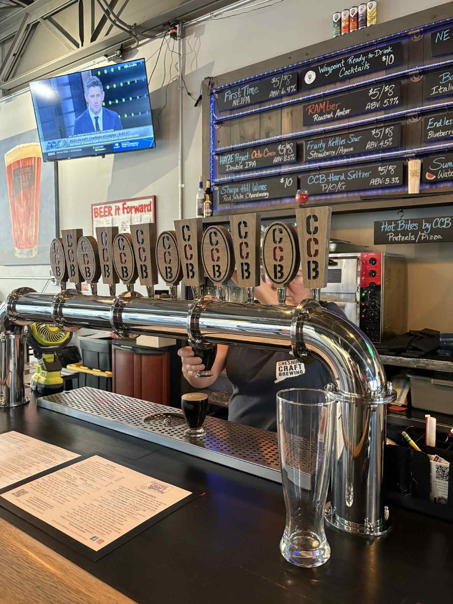 When I pulled up to Cheshire Craft Brewing, I was expecting another run of the mill former warehouse turned brewery taproom, but I was pleasantly surprised by how large it was well planned out. There is plenty of seating inside and out with a newly added covered space out back. After the aesthetic, the next thing I always take notice of is the what’s on tap. Cheshire had a wide variety of beers with lights, darks, bitters, sweets, and lots of things for non-beer drinkers. The taproom offers wine, craft cider, and canned cocktails from Waypoint Spirits. Looks at their website, they also seem to have lots of events lined up like music bingo, yoga, speed dating, and live music.