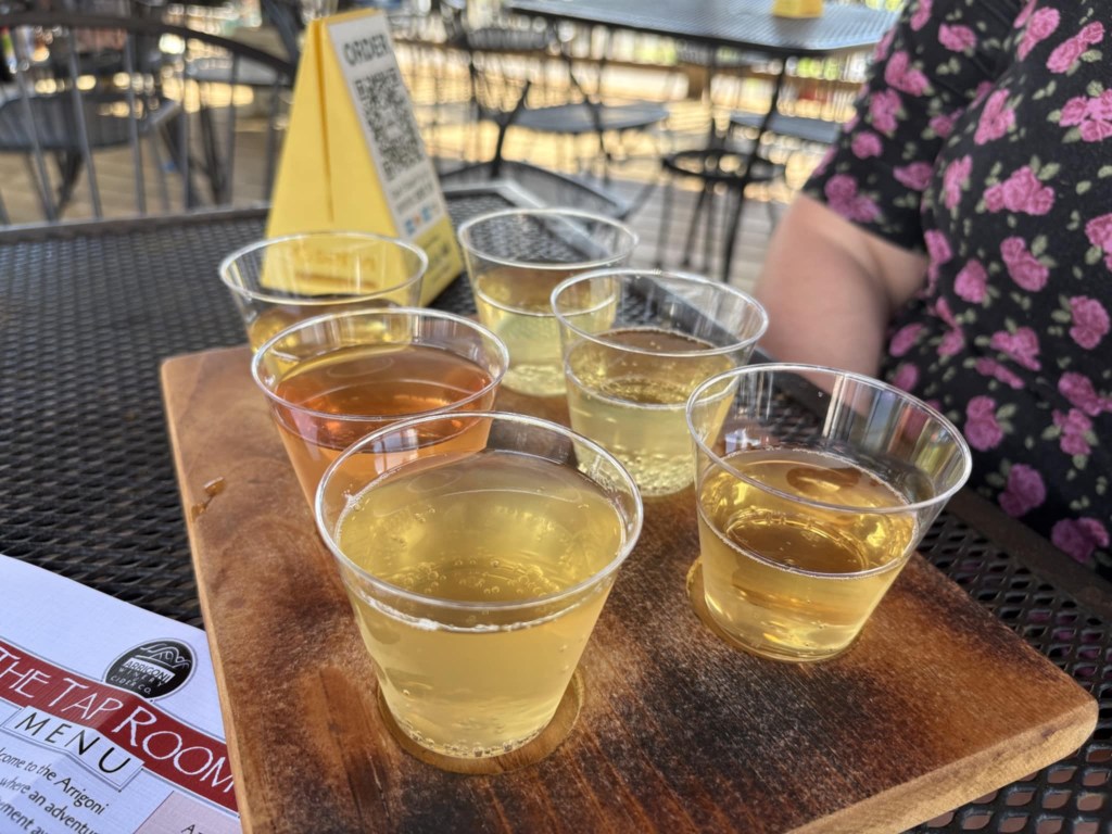 Named after the Arrigoni Bridge, connecting Middletown and Portland, Arrigoni Winery & Cider Company is located in Portland, Connecticut and offers a wide range of wine and cider. Nick and I made our trips to Arrigoni specifically for their self described “New England Ciders.” Walking into their location you will see their store selling a large assortment of wine merch with glasses, bottle openers, tote bags, and more. They have a large indoor and outdoor seating area that makes it perfect for warm weather events. The tasting room offers a large number of options and specially catered cider flights with low and high percentage ciders and apple wines.